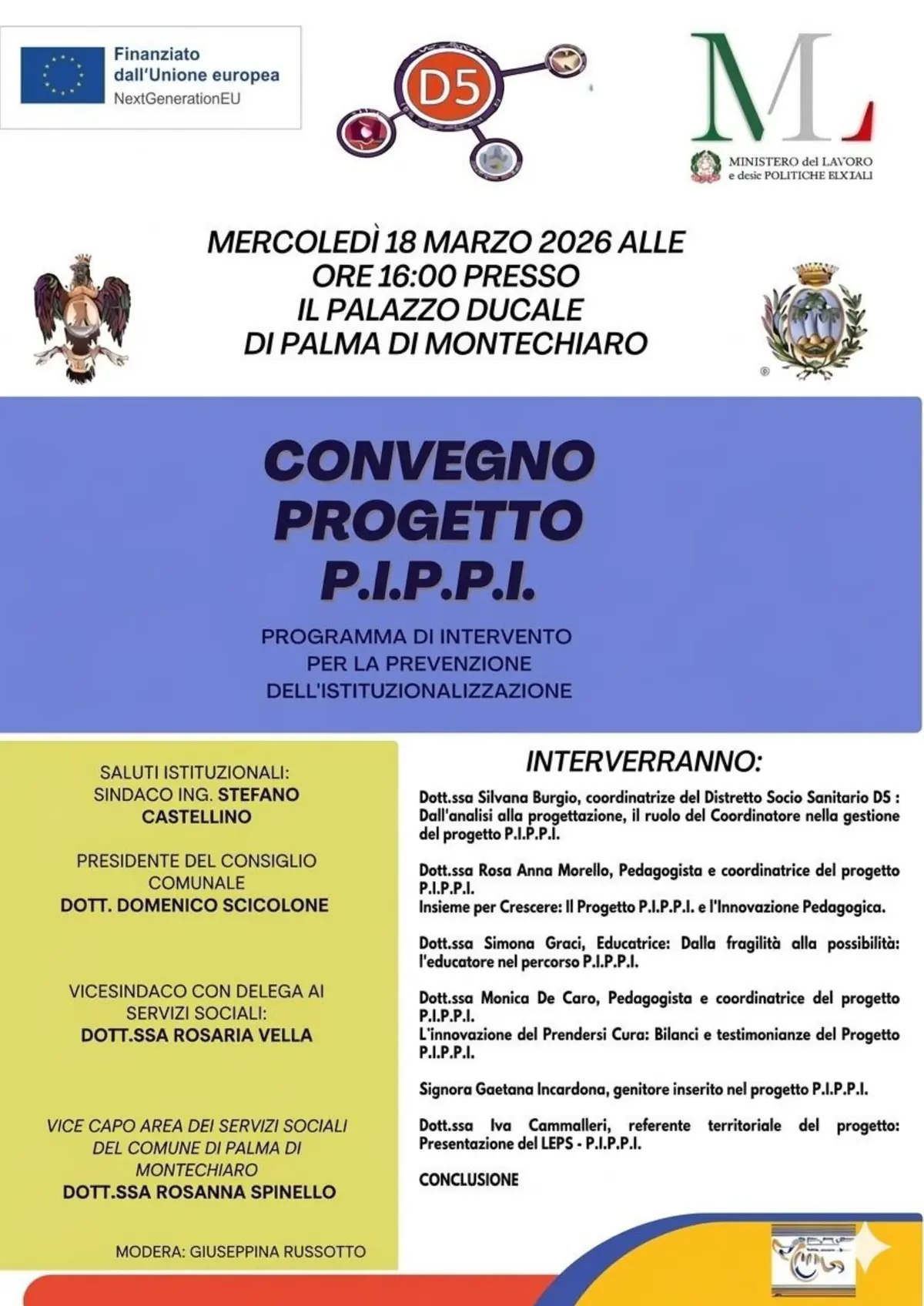Convegno Progetto P.I.P.P.I. programma di Intervento per la prevenzione dell'istituzionalizzazione (inizio ore 16:00)
